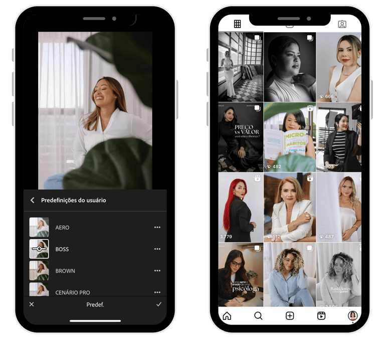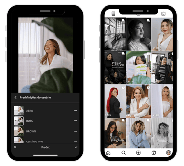 Arraste para o lado e veja como a luz, o contraste e as cores são corrigidos instantaneamente.Essa é a diferença entre um feed comum e um feed que atrai olhares, curtidas e novos seguidores.
